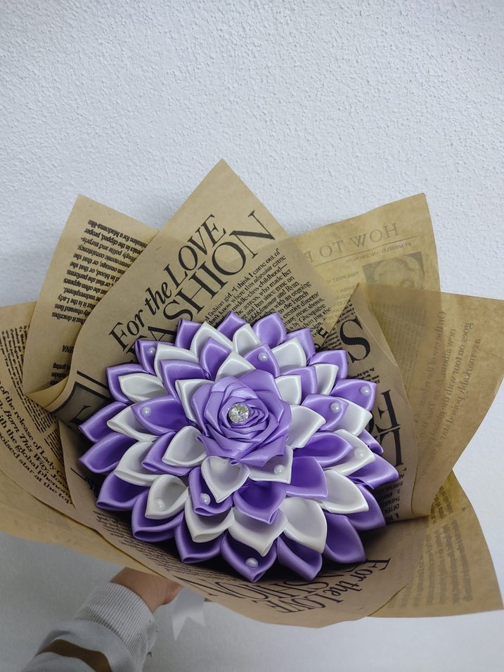Mor renkli, çiçek buketi fırfırlı katmanlara sahip, asla solmayan ömür boyu saklanabilecek bir hediye .