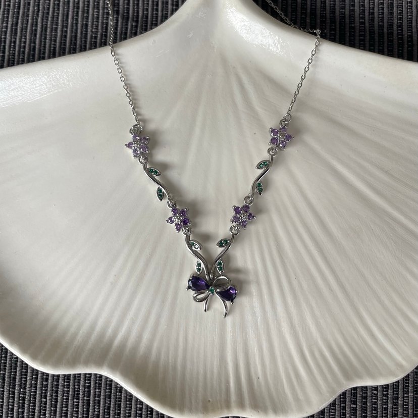 Silver Mor Çiçekli Çelik Kolye