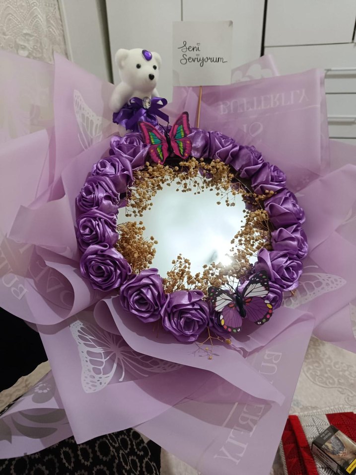 Mor renkli, çiçek desenli ve kurdele detaylı kadın broşu. Düğünler için uygun, bohem ve gösterişli tarzda bir aksesuar el emeği özenle zaten ömürlük Buket .