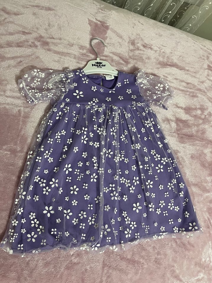 Mor Çiçekli Kız Çocuk Elbise