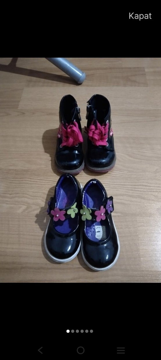 Mor renkli, çiçek desenli kız çocuk ilk adım ayakkabısı, lastik taban ve cırt cırtlı kapanışa sahiptir. Gotik tarzda, renkli ve şık bir modeldir.