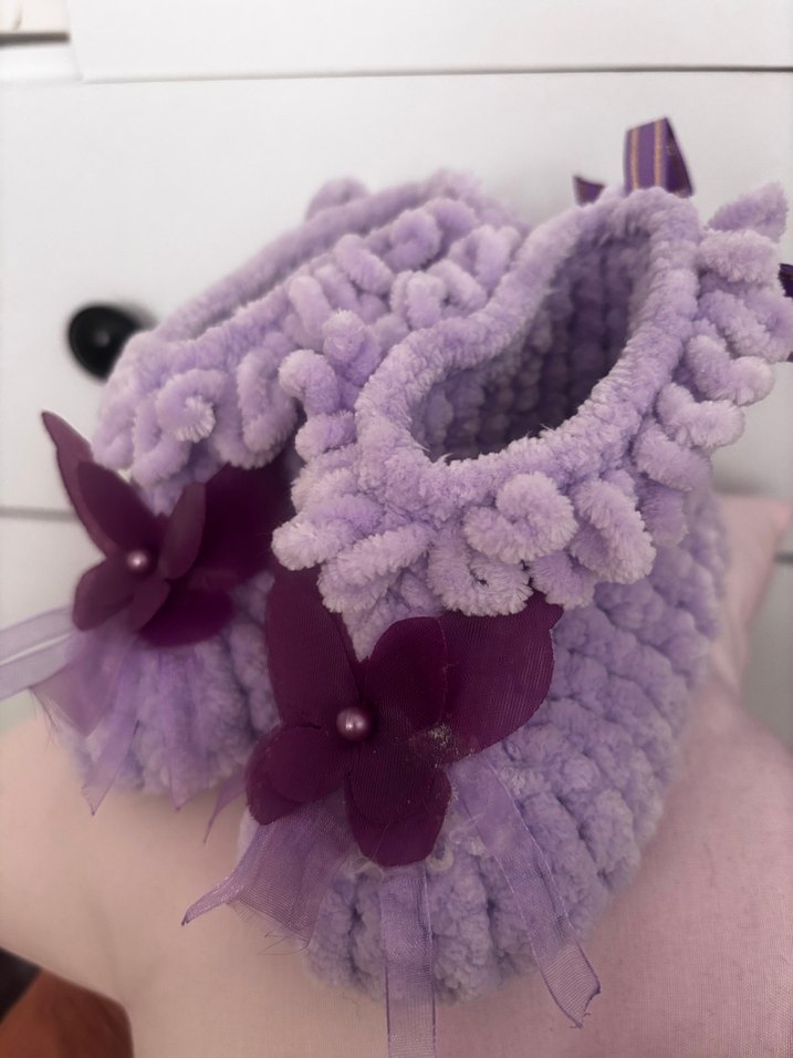 Mor Çiçekli Örgü Kız Çocuk Ev Terliği