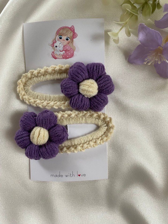 Mor Çiçekli pofuduk papatya Örgü Çocuk Toka Seti