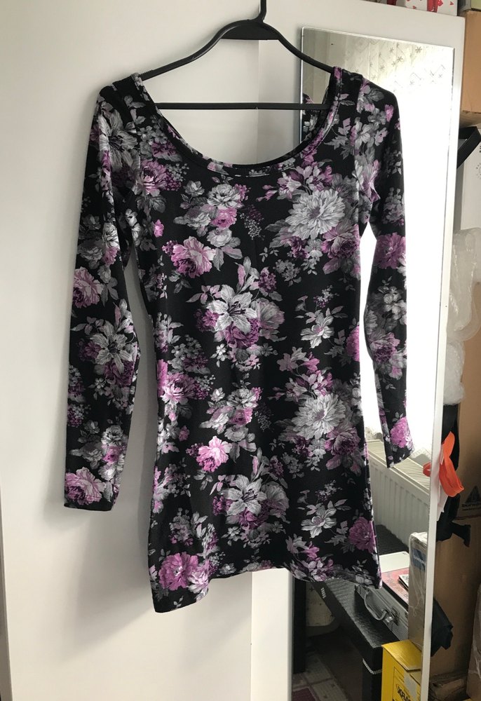 Dar kesim, uzun kollu. Mor çiçek desenli sentetik kumaştan olup cesur gotik tarz sunar. 34 bedendir. Ürünlerimde iade yoktur. #kadınbluz #bluz