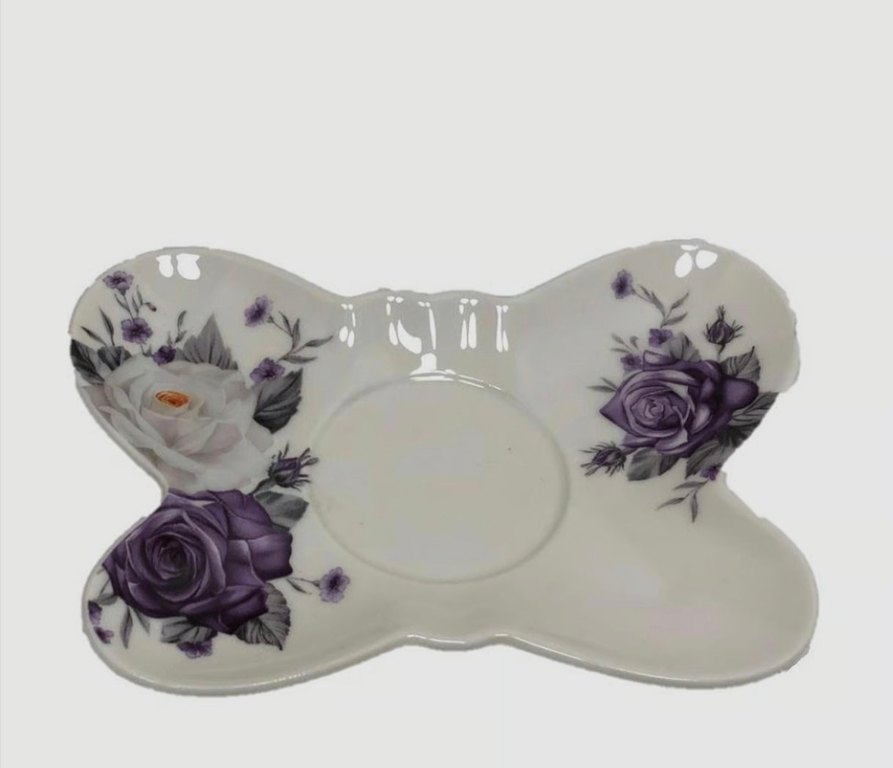 Mor Çiçekli Vintage Porselen çay Tabak 12 li