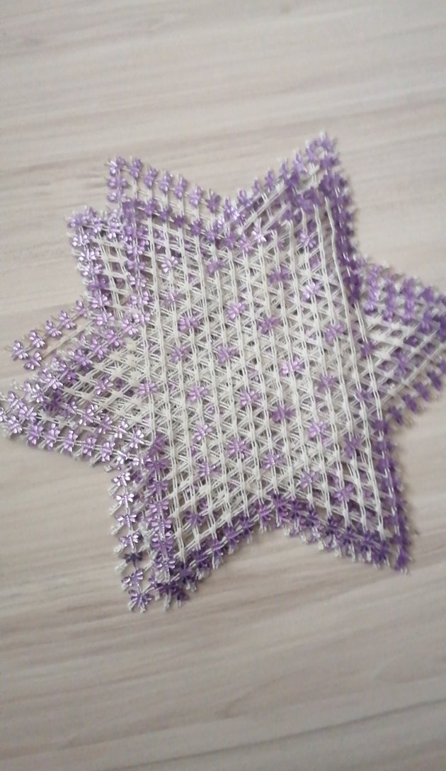 Mor Çiçekli Yıldız Şeklinde El Yapımı Örgü