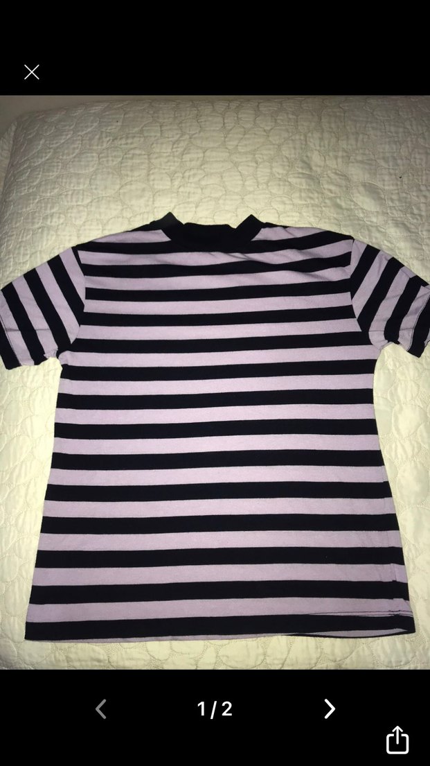 Mor ve siyah çizgili, kısa kollu ve balıkçı yakalı, vücuda oturan tisort . Günlük kullanım için yumuşak ve sıcak kumaştan üretilmiştir.