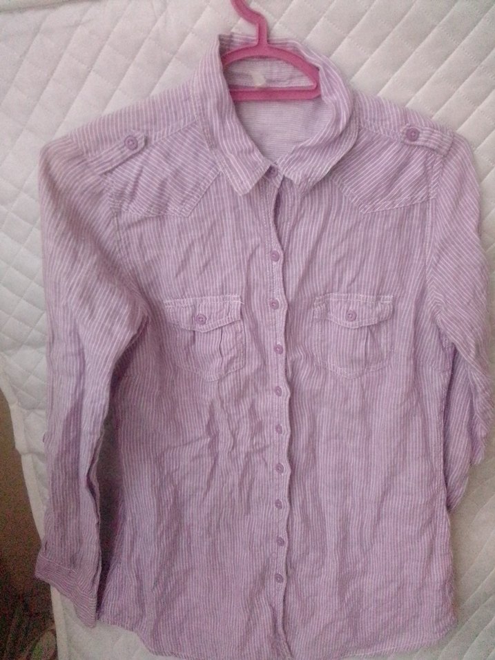 İki kol alti 44 boy 70 Ufak.lekesi var belirsiz arka tarafda uygun fiyatta Mor keten gömlek, düğmeli önden kapanış, yakalı ve uzun kollu tasarımıyla rahat ve salaş bir görünüm sunar.