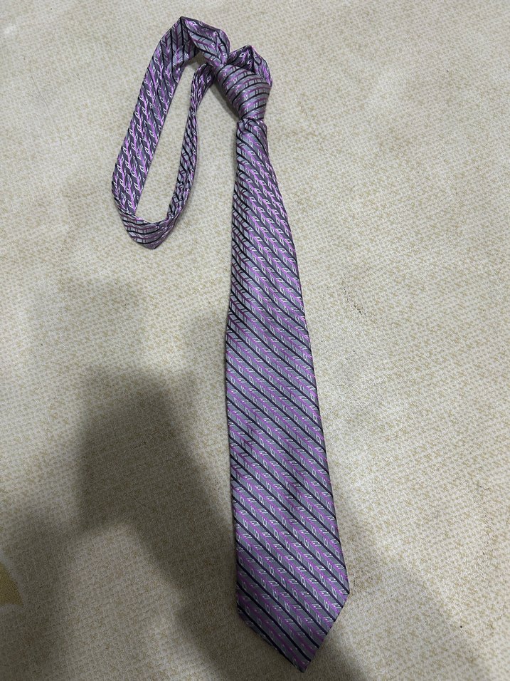 Mor zemin üzerine ince çizgilerle tasarlanmış, klasik ve sokak stili arasında bir erkek kravatı. İş ortamına uygun ama rahat bir görünüm sunar.