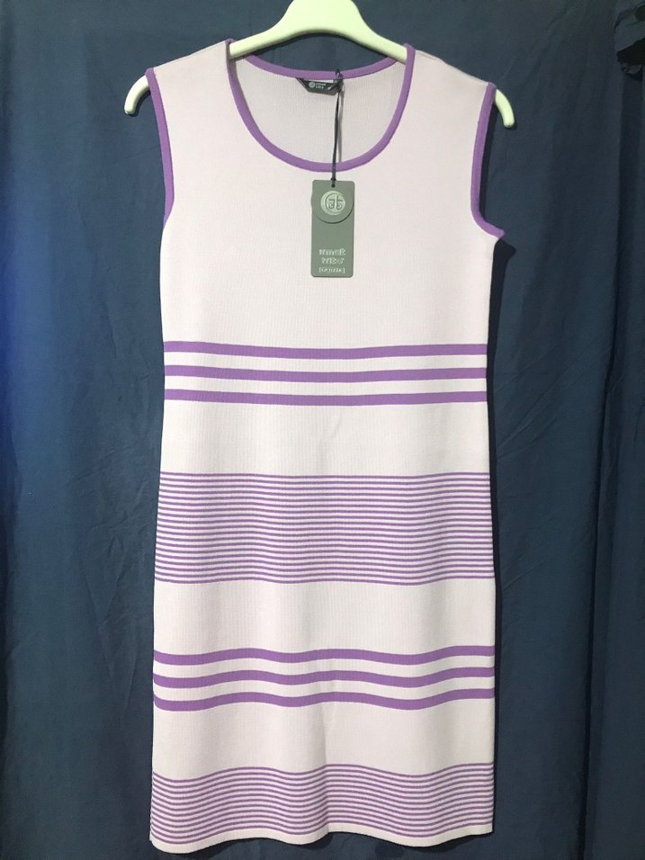 Mor Çizgili Midi Kolsuz Triko Elbise