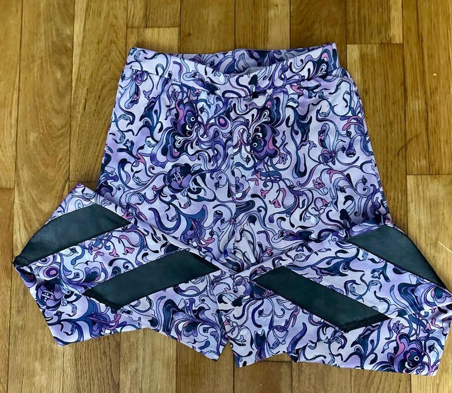 Koyu mor,vücuda oturan çocuk taytı, spor ve sokak stiline uygun. Paçalarında tül detayı var