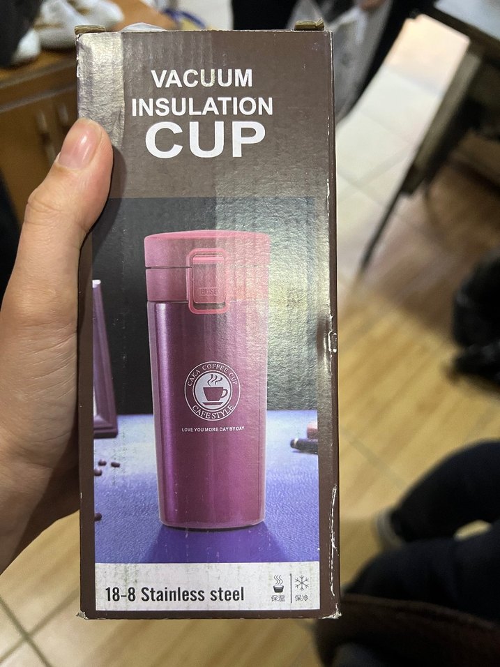 Mor renkli, 18-8 paslanmaz çelikten üretilmiş vakum yalıtımlı termos bardak. Sıcak veya soğuk içecekleri korur, çocuklar için uygun.