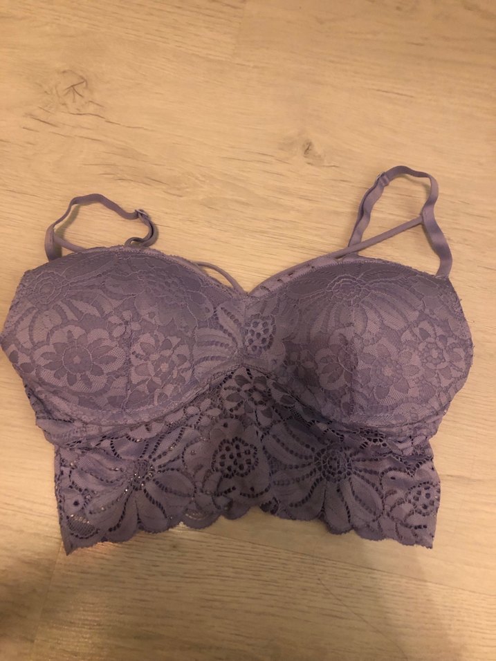 Mor renkte, çiçek desenli dantel detaylara sahip, ayarlanabilir askılı bohem tarzda bralet destekli