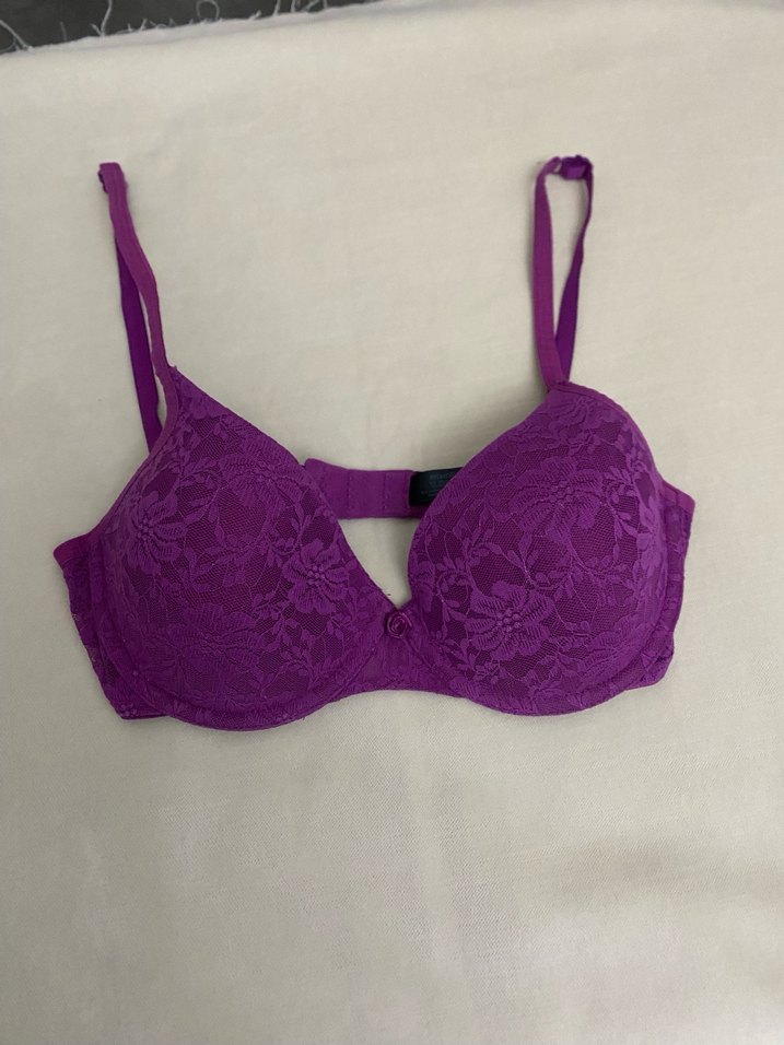 Mor renkte, dantel detaylı, minimalist goth tarzında sütyen. Ayarlanabilir askılar ve sağlam arka kapama bulunur. 32/C kalip cok yeni durumda . Tertemiz ve sorunsuz