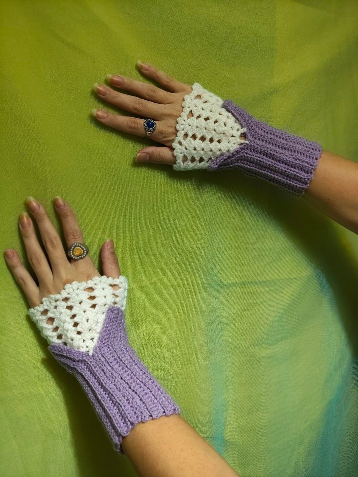 Mor Dantel Detaylı Örgü Bohem Eldiven