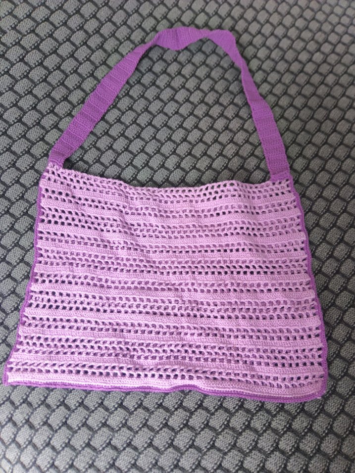 Mor renkte dantel detaylı örgü kadın çanta, tek askılıdır. Bohem tarzı yansıtan sade ve rahat bir modeldir. Günlük kullanıma uygundur.