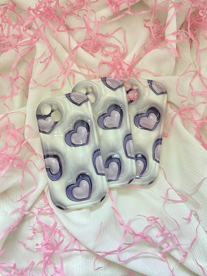 Mor pastel renkli telefon kılıfı, dantel desenli kalplerle counterculture tarzını yansıtıyor.
