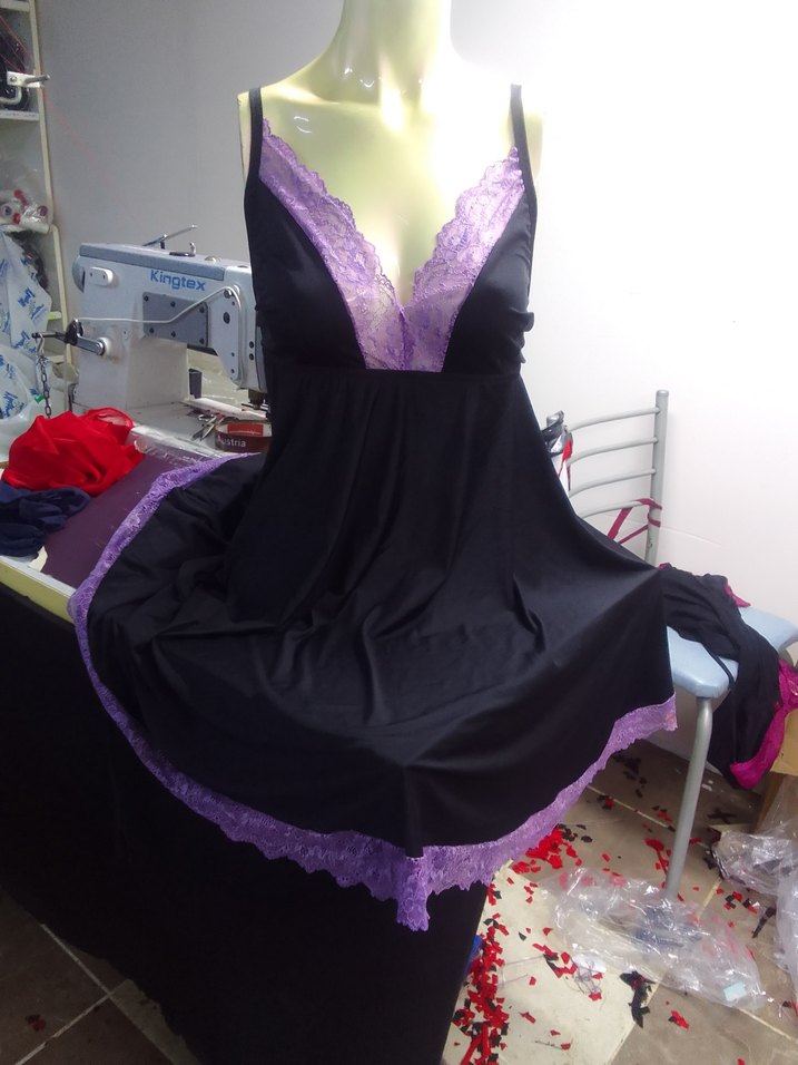 Mor dantel detaylı, askılı uzun ve vücuda oturan gotik tarz gecelik.