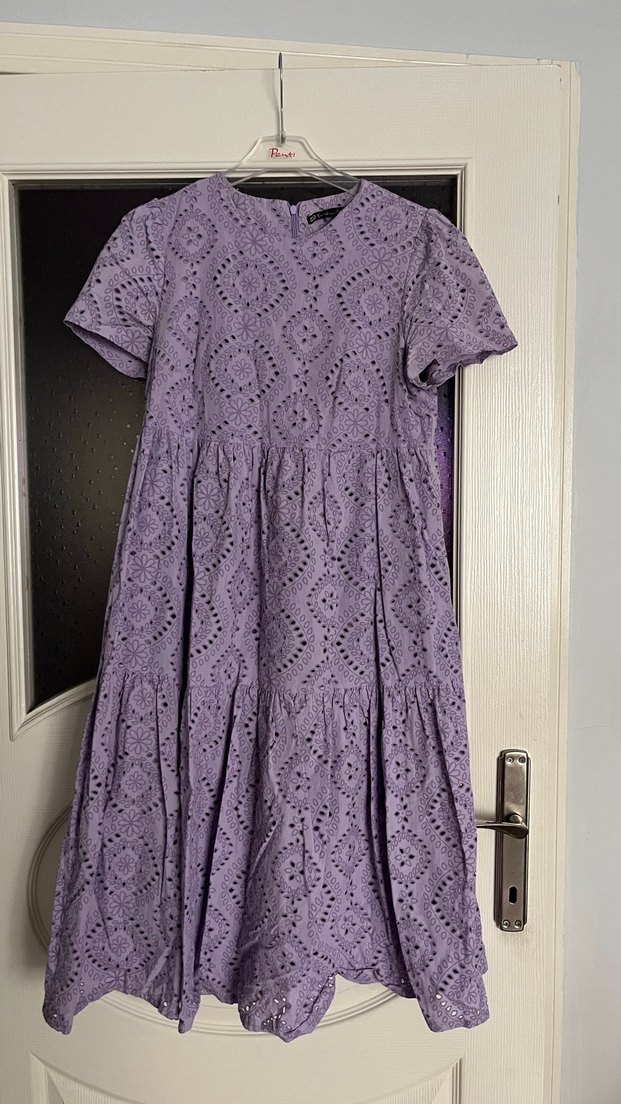 Mor Dantel İşlemeli Midi Bohem Elbise