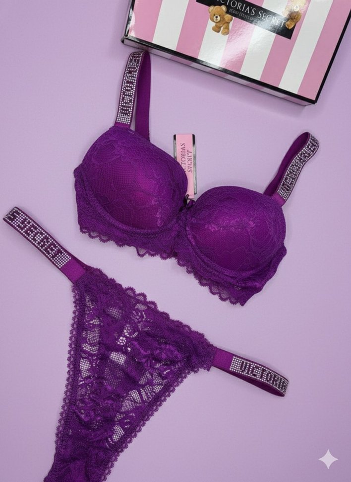 Mor Dantelli Gotik Sütyen ve Külot Takımı