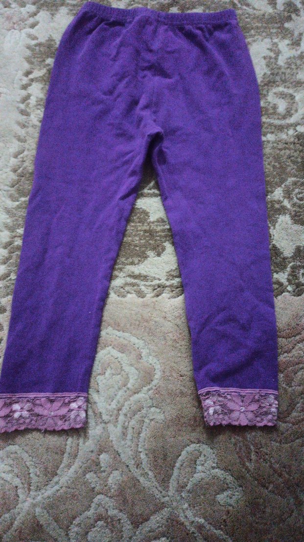 Yumuşak ve sıcak kumaştan, bileklerinde dantel detaylı, mor renkli kız taytı. Bohem tarzına uygun.