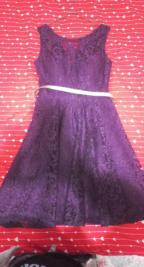 Koyu mor renkte, dantelli, V yaka ve kolsuz tasarıma sahip, midi uzunlukta, vintage goth tarzında abiye elbise. Fitted kesimle düğünler için uygun.
