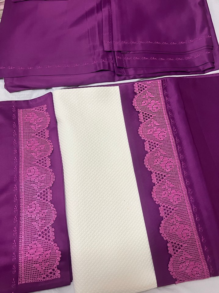 Mor dantelli pike saten ve Çarşaf Takımı