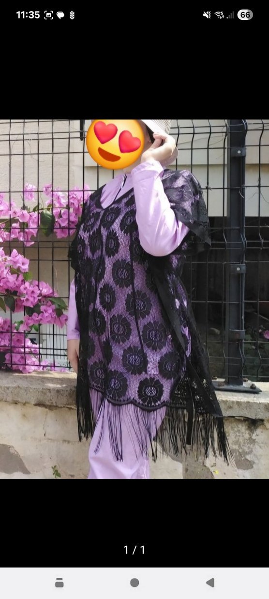 Koyu mor triko şal, siyah çiçek desenli dantel ve püskül detaylarıyla gotik ve bohem tarzı yansıtıyor.