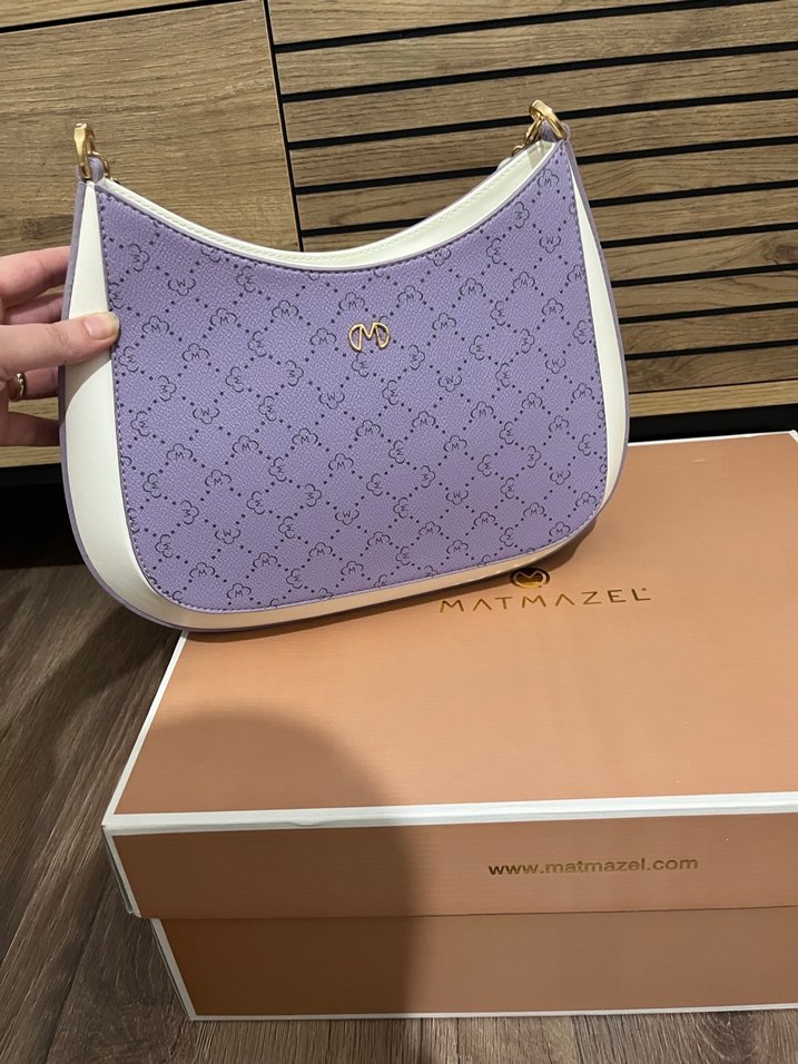 Mor deri kadın çanta, minimalist baskılı desene ve fermuarlı kapanışa sahiptir. Modern klasik tarz ve pastel tonlarla trendy casual kullanıma uygundur. Marka: MATMAZEL. Hiç kullanılmadı kutusu ile birlikte gönderilecektir