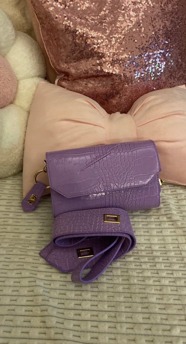 Mor Deri Kemerli Yılan Desenli Kadın Çanta