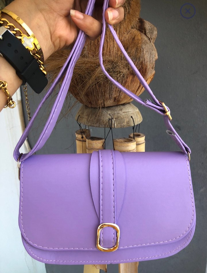 Pastel mor renkte deri çanta, tokalı askısı ile günlük kullanıma uygun trend ve rahat Paris tarzı sokak giyimi çantasıdır.