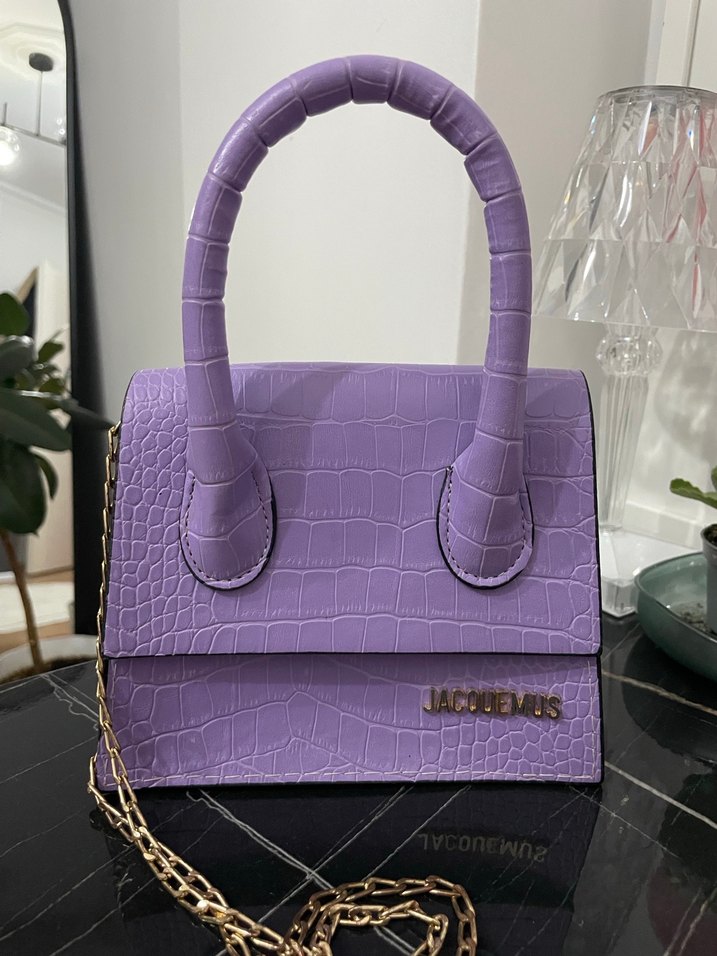 Mor Deri Yılan Desenli Kadın Çanta