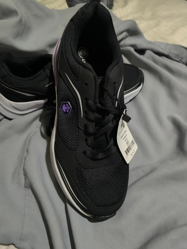 Mor desenli, bağcıklı ve stiletto topuklu kadın spor ayakkabısı. Kauçuk malzemeden üretilmiş, spor ve sokak stili için uygun.