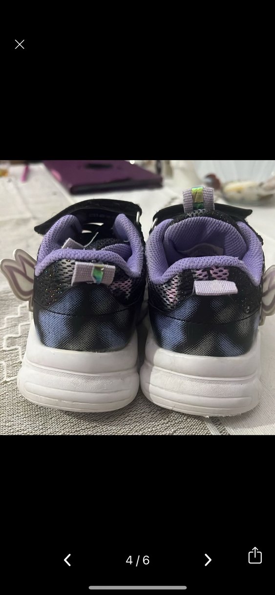 Koyu mor yılan desenli kız çocuk spor ayakkabısı, cırt cırtlı ve kauçuk tabanlıdır. Mağazadan alındı 3 ay ancak kullanabildik