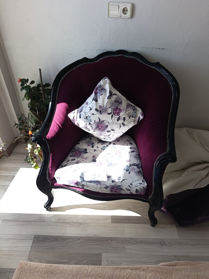 Mor renkte, çiçek desenli modern klasik tarzda desenli minder.