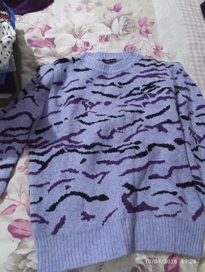 Mor Desenli Örgü Kadın Kazak