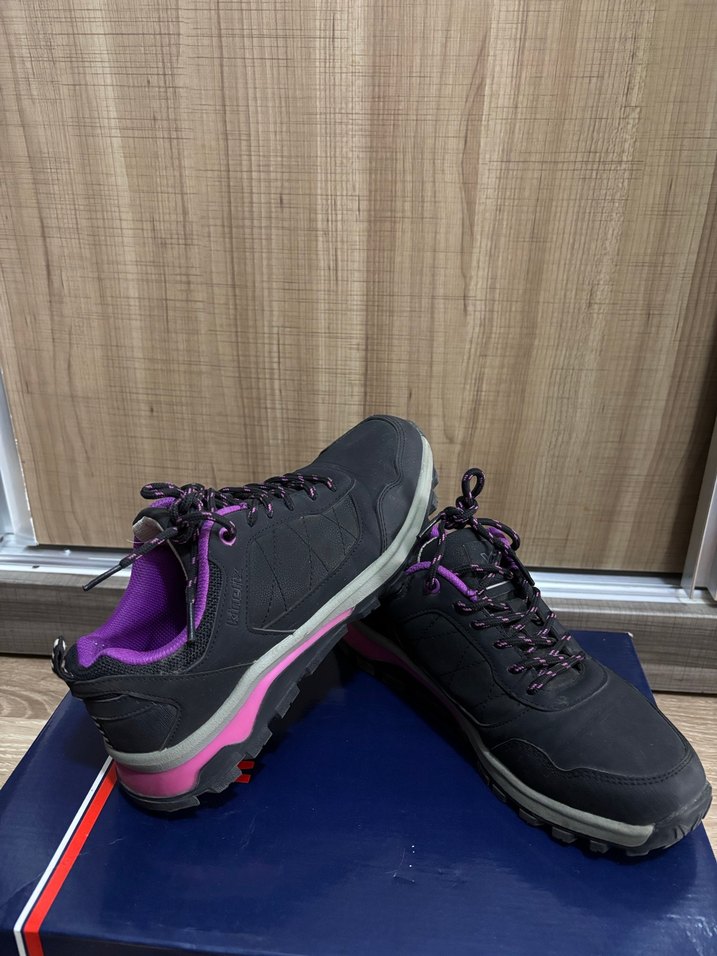 Mor detaylara sahip kadın spor ayakkabısı, kauçuk taban ve elastik özelliklerle sokak tarzı ve outdoor kullanıma uygundur. Tertemiz iki kere anca giyilmiştir.