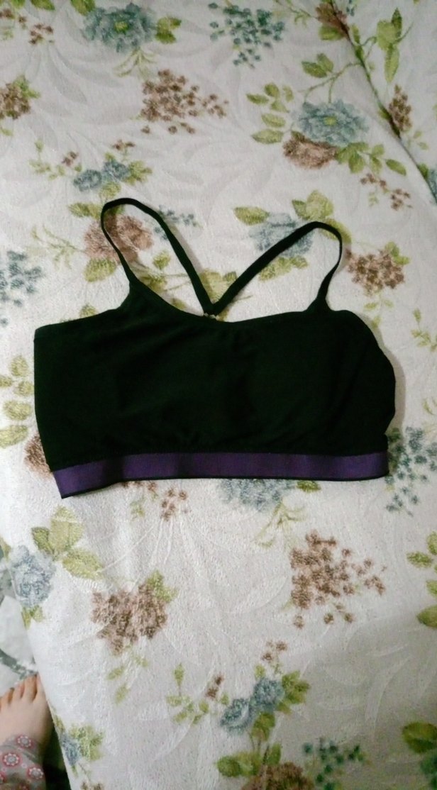 Mor bant detaylı siyah goth tarzı spor sütyeni, ince askılı ve normal boyda, athleisure için uygun