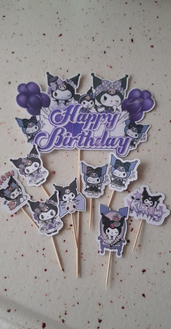 Mor tonlarında sevimli karakterli ve "Happy Birthday" yazılı doğum günü parti kürdanları, pasta ve atıştırmalık süslemeye uygundur. bir kez kullandik temizlendi sorunsuzdur