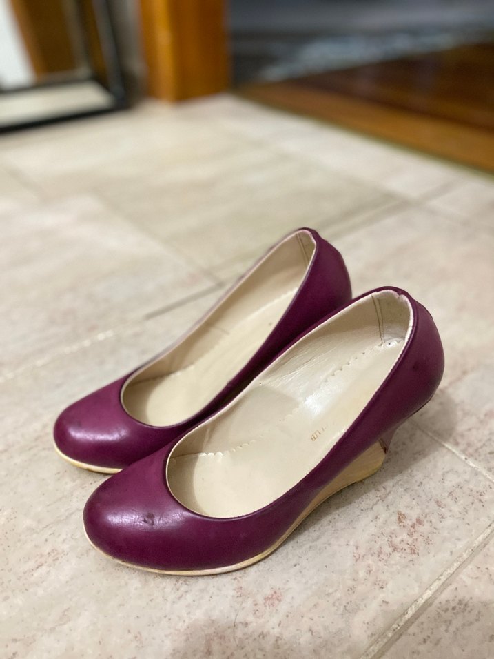 Mor dolgu topuklu kadın klasik ayakkabısı, parlak yüzey ve minimalist tasarımla, rahat ve şık bir görünüm sunar.