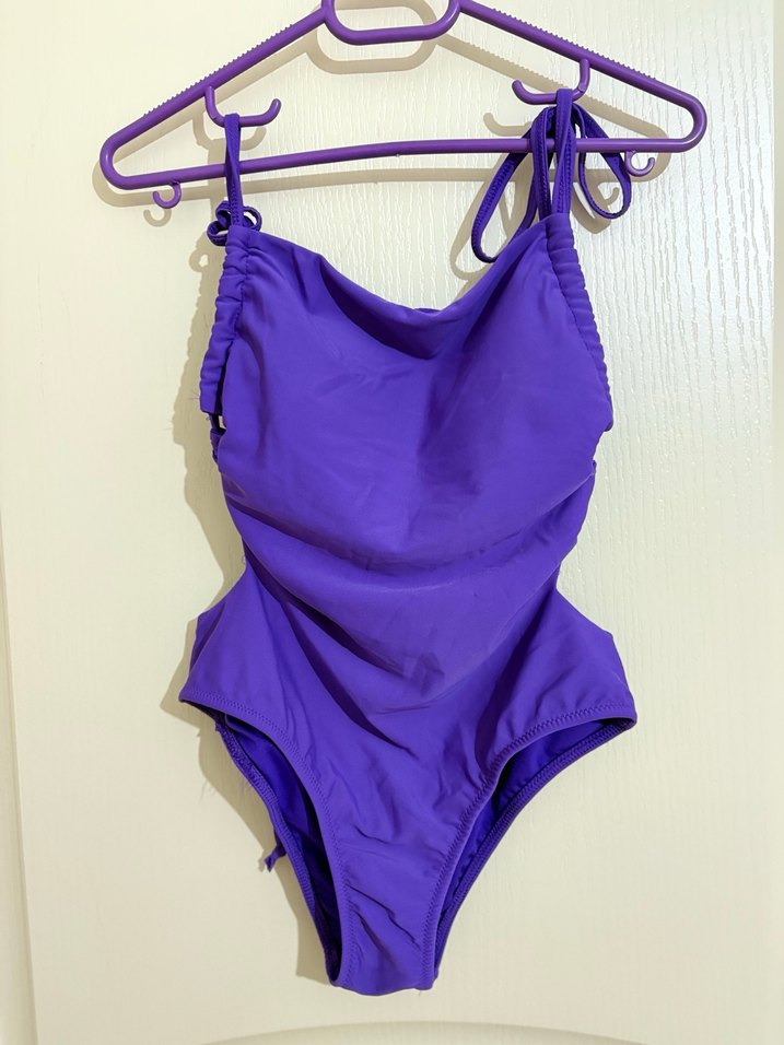 Mor Drapeli Askılı Kadın Mayo