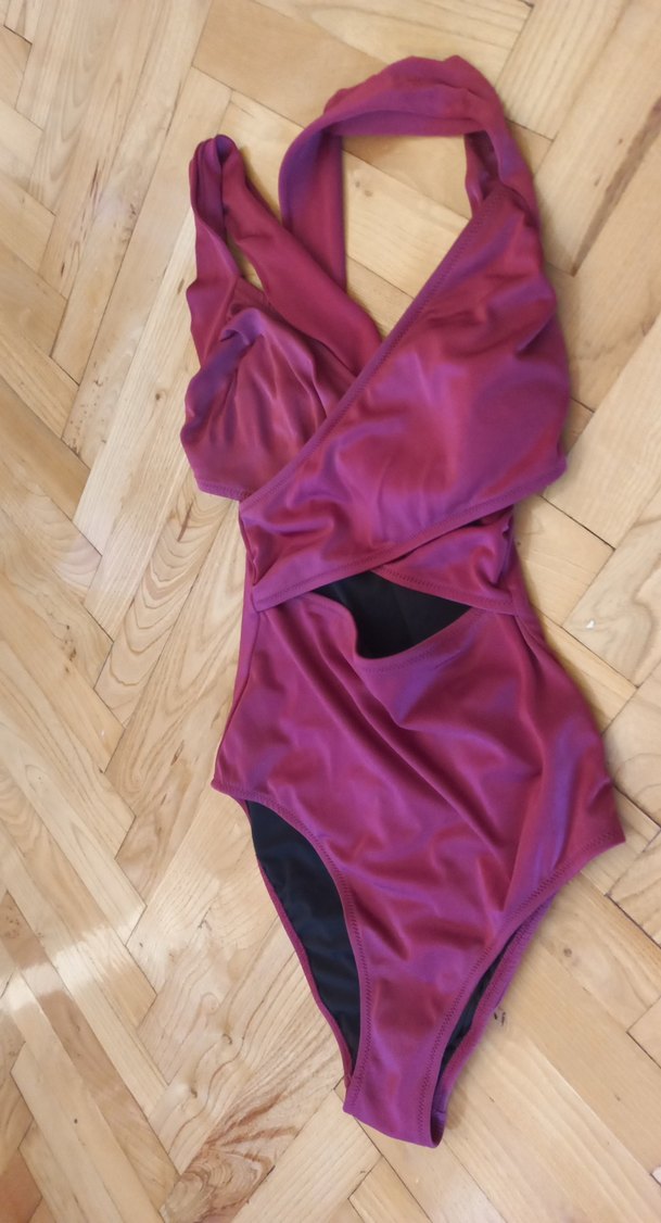 Mor renkli, drapeli ve ipli askılı bu kadın mayo, vücuda oturan kesimi ve midi uzunluğuyla çağdaş bir stil sunar. Günlük kullanıma uygundur.