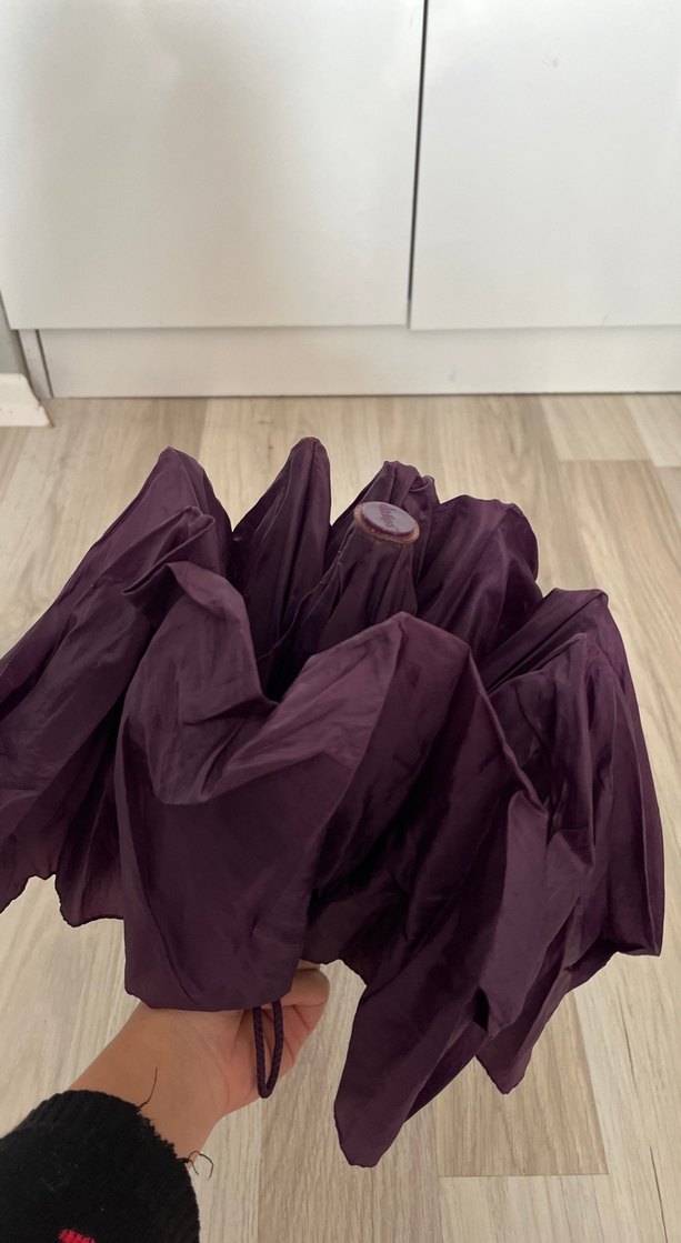Minimalist ve gotik stile uygun, mor drapeli kadın şemsiye. Moda öncüleri için avant-garde bir tasarım. ☂️