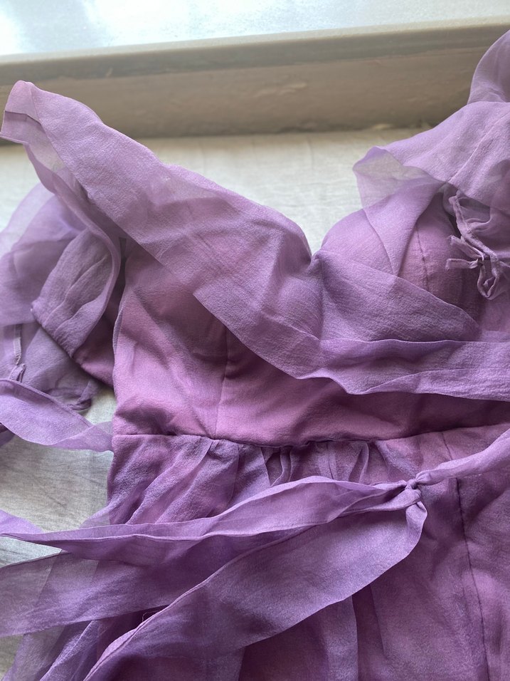 Bu mor drapeli, fitted midi gelinlik, tekne yaka ve ince askılarıyla vintage bohem tarzını yansıtıyor. Düğünler için ideal bir seçim. 1 defa giydimmmm Çokkk hoş beden olmuyoooo
