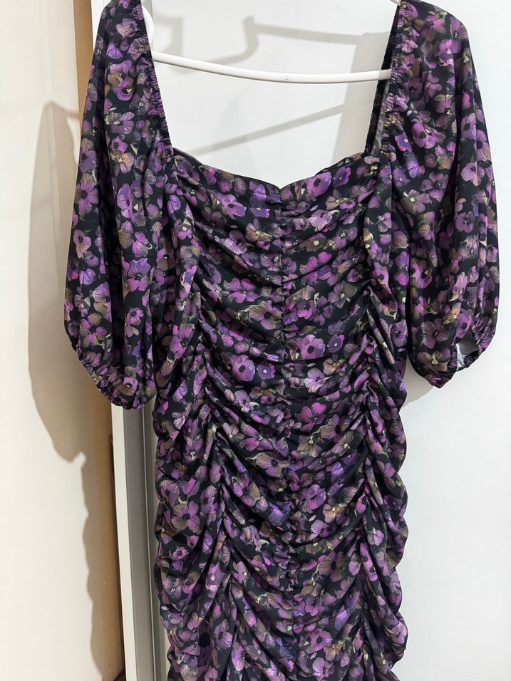 Mor Drapeli Midi Kadın Abiye Elbise