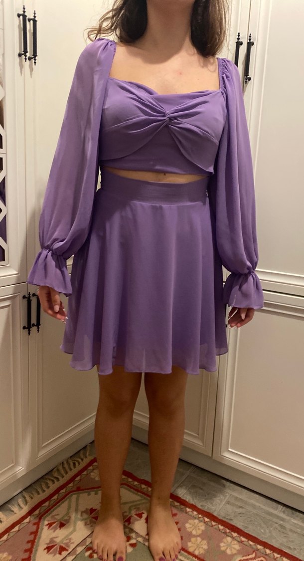 Mor Drapeli Şifon Elbise