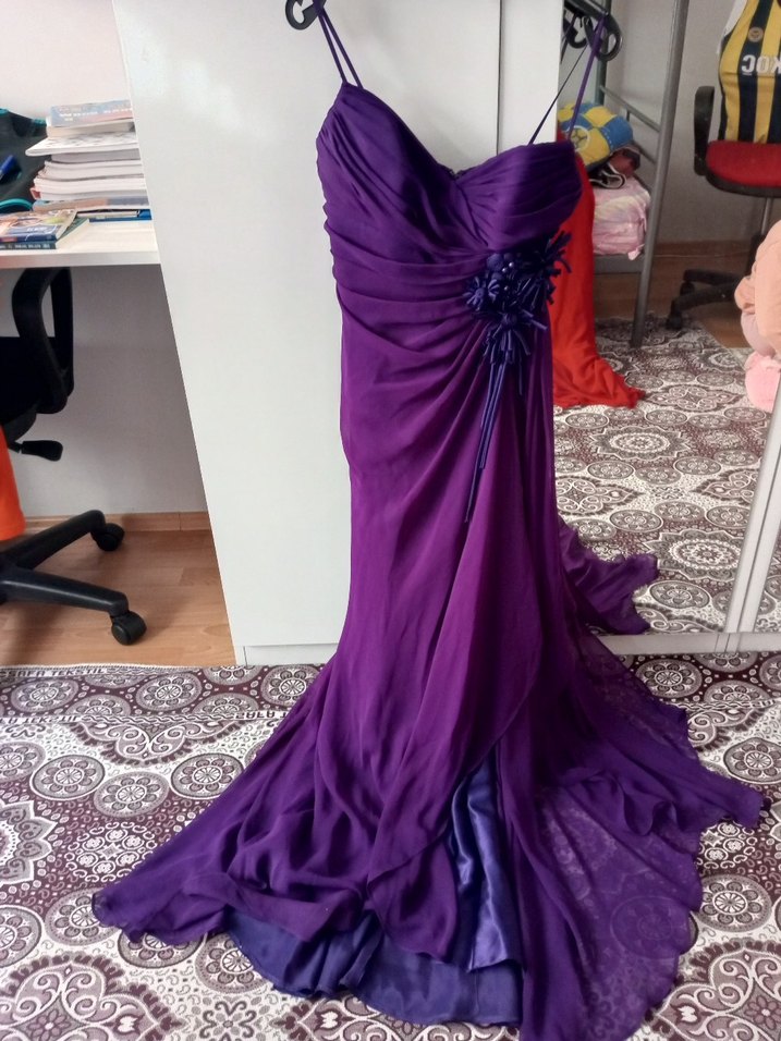 Mor Drapeli Uzun Abiye Elbise