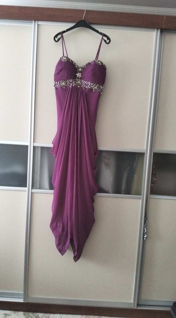 Mor Drapeli Uzun Abiye Elbise