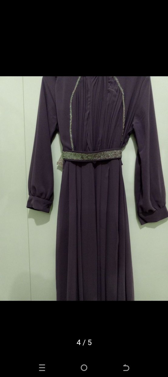 Mor Drapeli Uzun Kadın Abiye Elbise