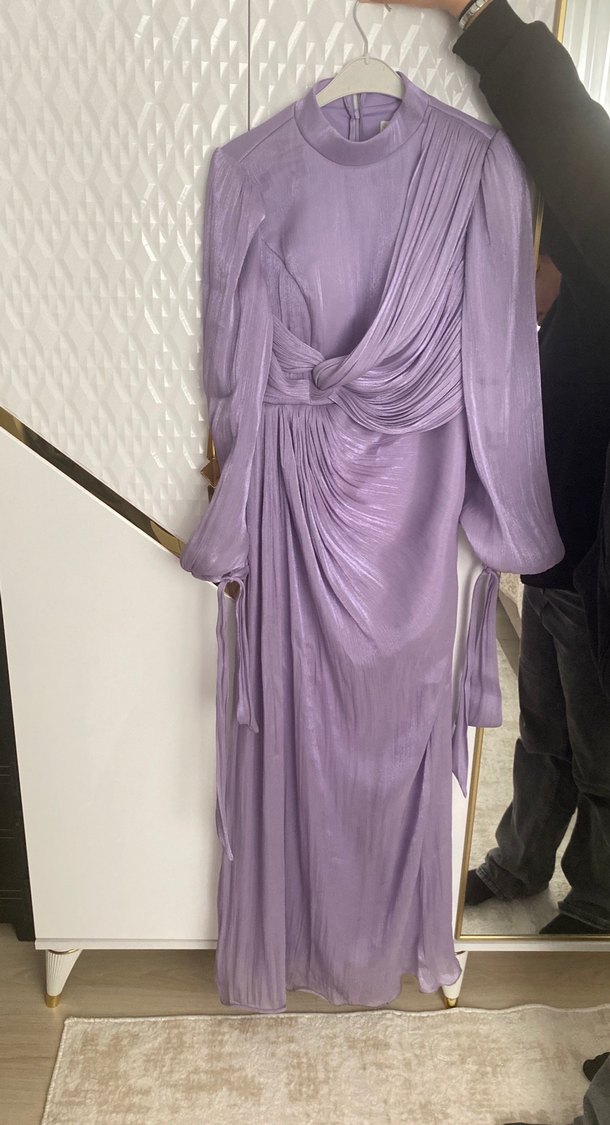 Mor Drapeli Uzun Kadın Abiye Elbise